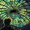 Description: SecUnit looking up through a windowed ceiling and seeing a space storm, as in Rogue Protocol